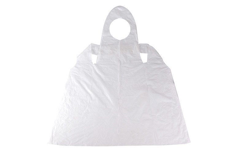 Tablier en polyéthylène transparent, destiné à une bonne protection du tronc et des jambes, tant dans le domaine médical qu’industriel ou alimentaire.